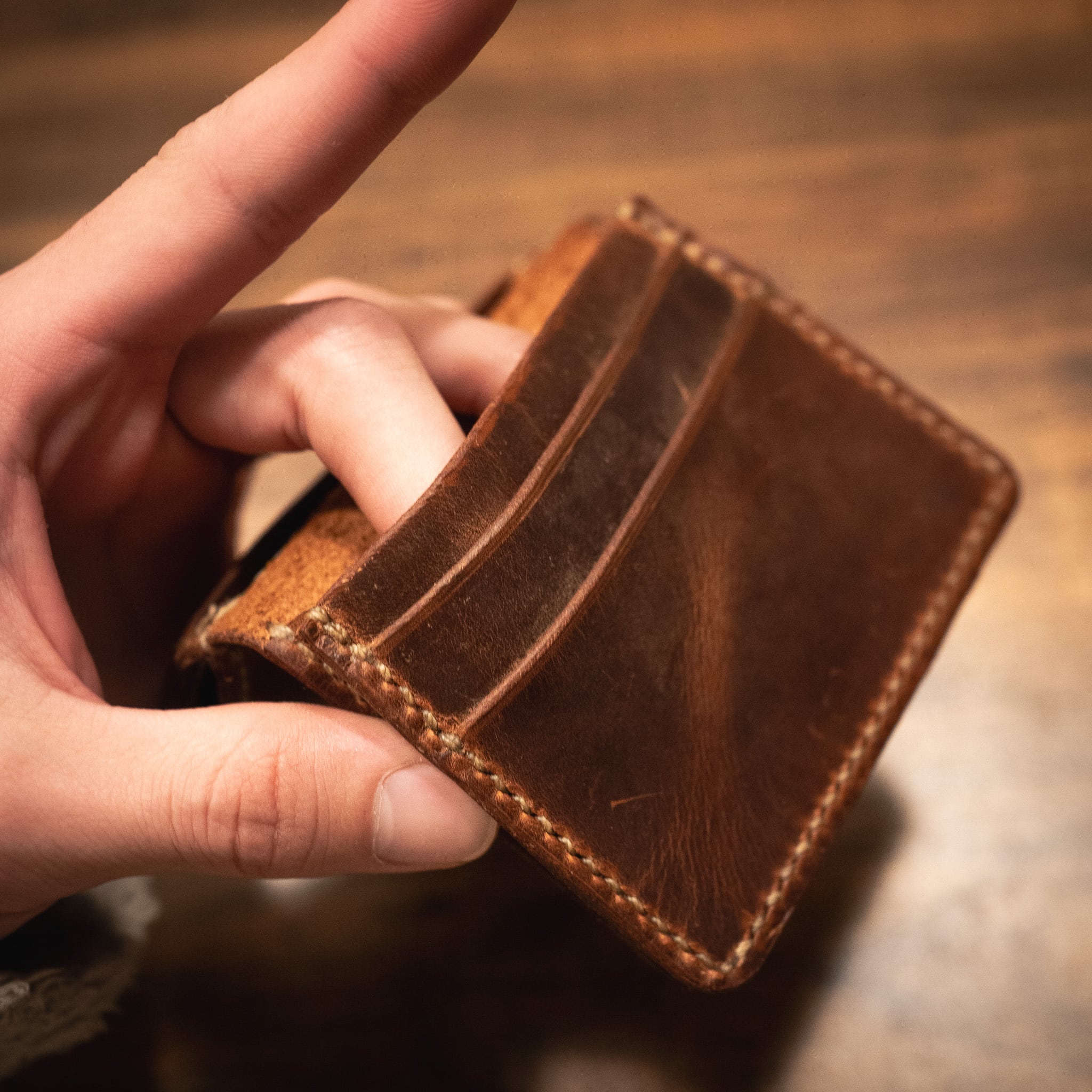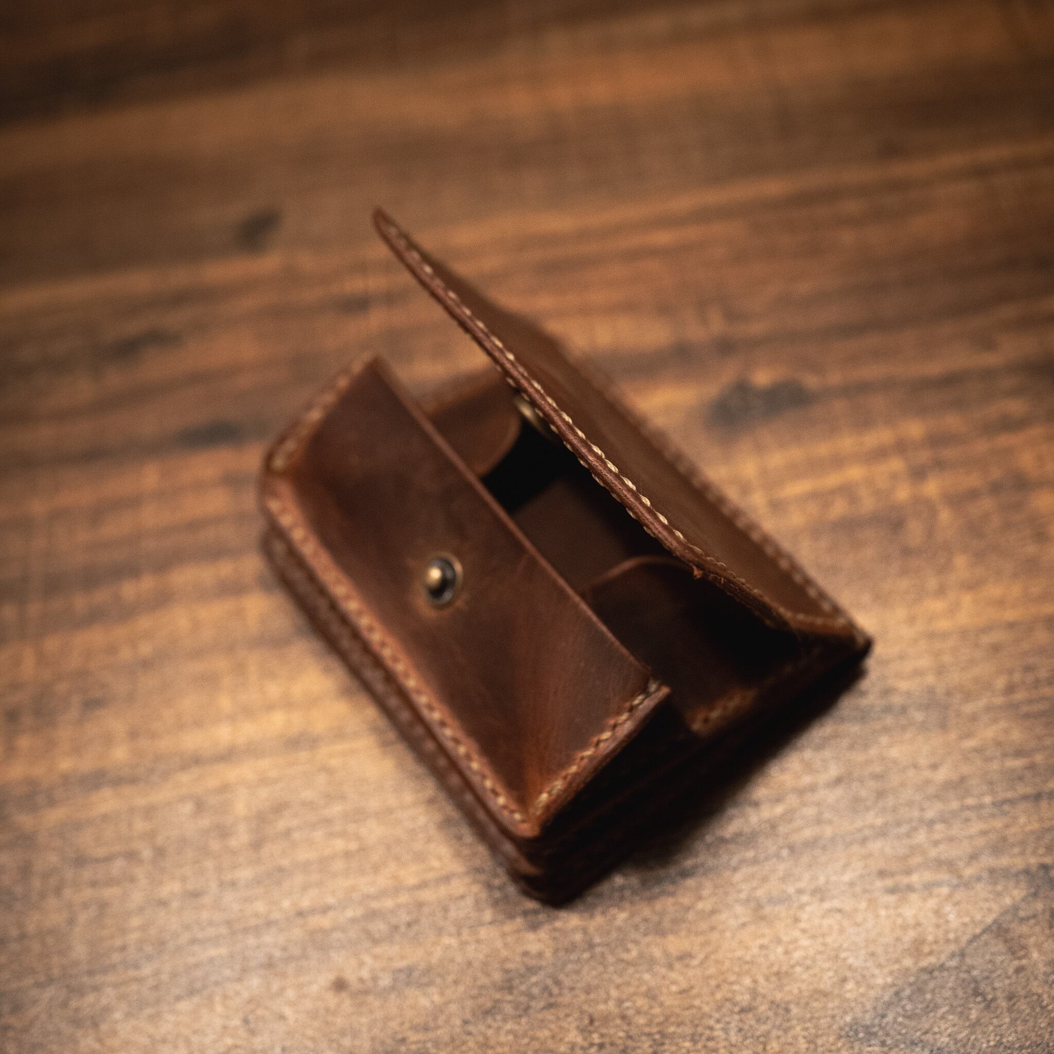 POCKET WALLETは、実用性と美しさを兼ね備えたカードコインケースです。厳選したクレイジーホースを使用しており、その独特な質感と優れた耐久性が魅力です。使うほどに手に馴染み、表面に現れるエイジングが自分だけの風合いに育っていく喜びを感じられます。シンプルなデザインながら、どんなスタイルにも合うその洗練された見た目は、日常使いにぴったりです。